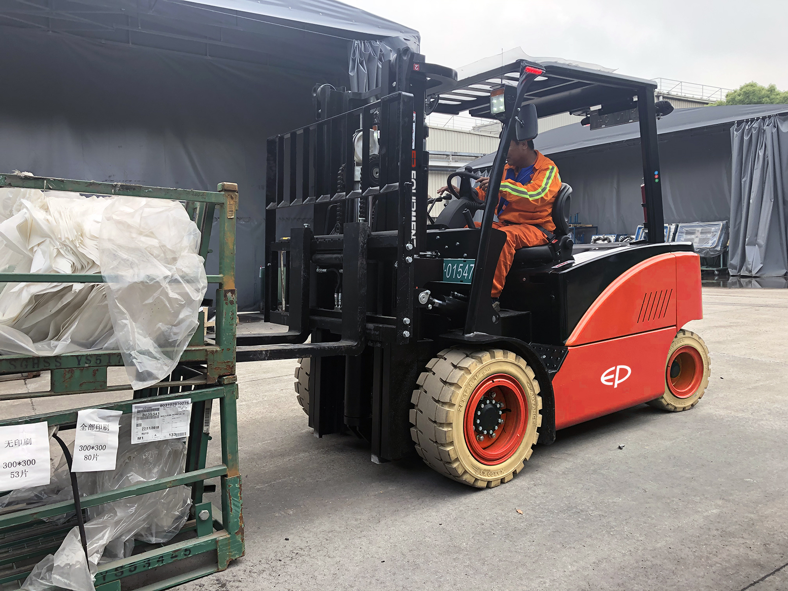 משאית מלגזה עם ארבעה גלגלים חשמלית זו של EP Equipment היא מלגזה נוספת של לי-יון עם קיבולת עומס גדולה יותר של 4.5 / 5.0 טון. יתרונותיה של טכנולוגיית Li-Ion נותנים עדיפות לבחירת מלגזות CPD45 / 50F8 ולא IC. ניתן לטעון במהירות את ה- F8 ויכול לספק מקום נרחב בתא המתאים לבקשת הארגונומיה.
